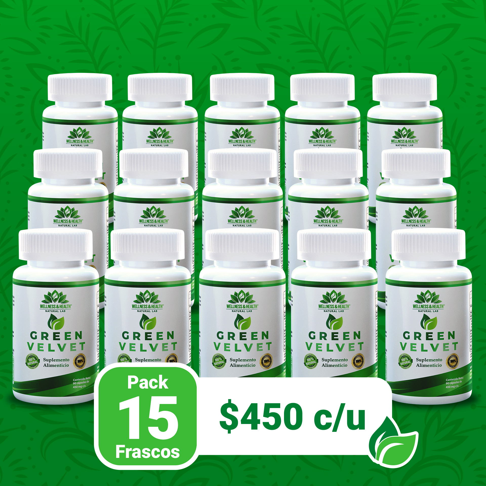 Green-Velvet® Caps - Paquete de 15 Frascos